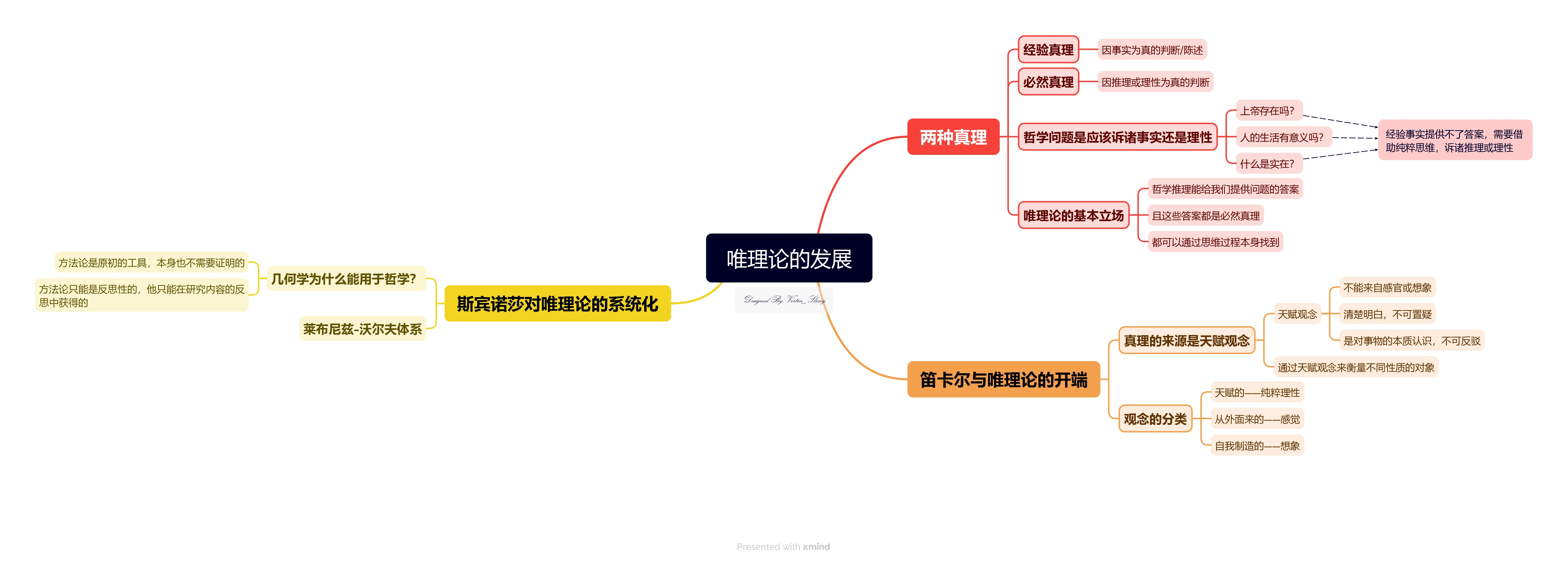 唯理论认为哲学推理能为我们提供问题的答案,这些答案是必然真理,并且都可以通过思维过程本身找到。唯理论者相信存在一些天赋观念,这些观念是理性的基础,通过对这些天赋观念的理性演绎,可以构建起普遍必然的知识体系。他们强调理性认识的可靠性,贬低感性认识的重要意义,认为感性经验容易出错,只有理性才能把握事物的本质和规律。
