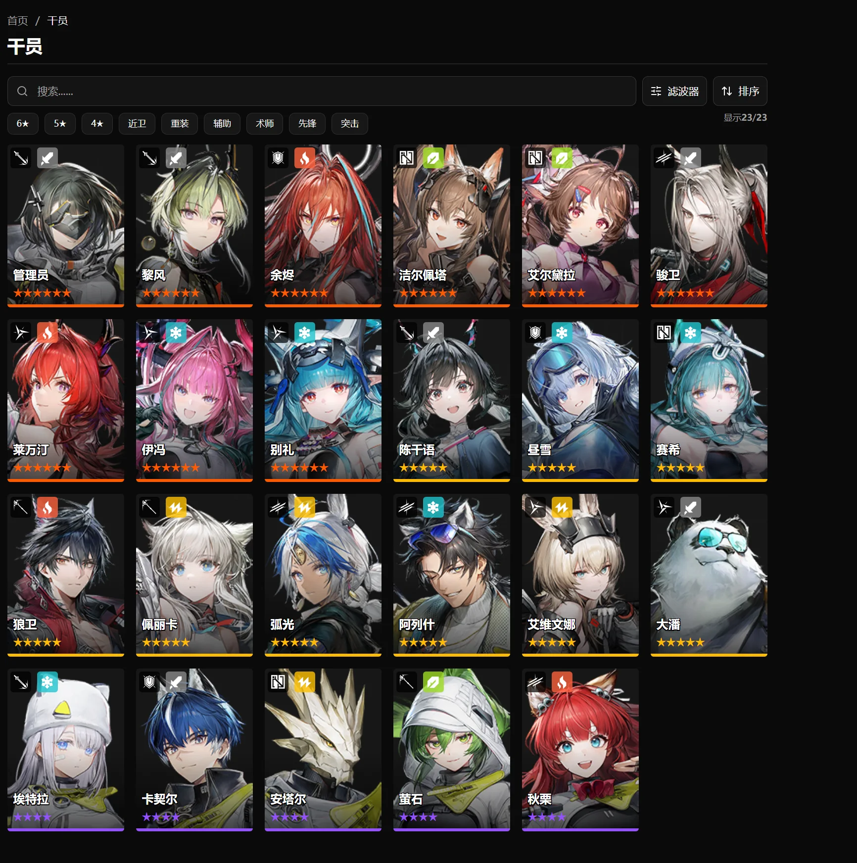 该网站是 《明日方舟》系列(含衍生作品如《明日方舟:终末地》)的第三方玩家自制 Wiki 平台 ,核心定位是 “干员信息查询库”,专注于整合游戏内 “干员” 的基础档案、星级分类及关联信息,为玩家(《明日方舟》中称 “博士”,《明日方舟:终末地》中称 “管理员”)提供清晰的干员检索与参考服务,完全聚焦游戏内容。