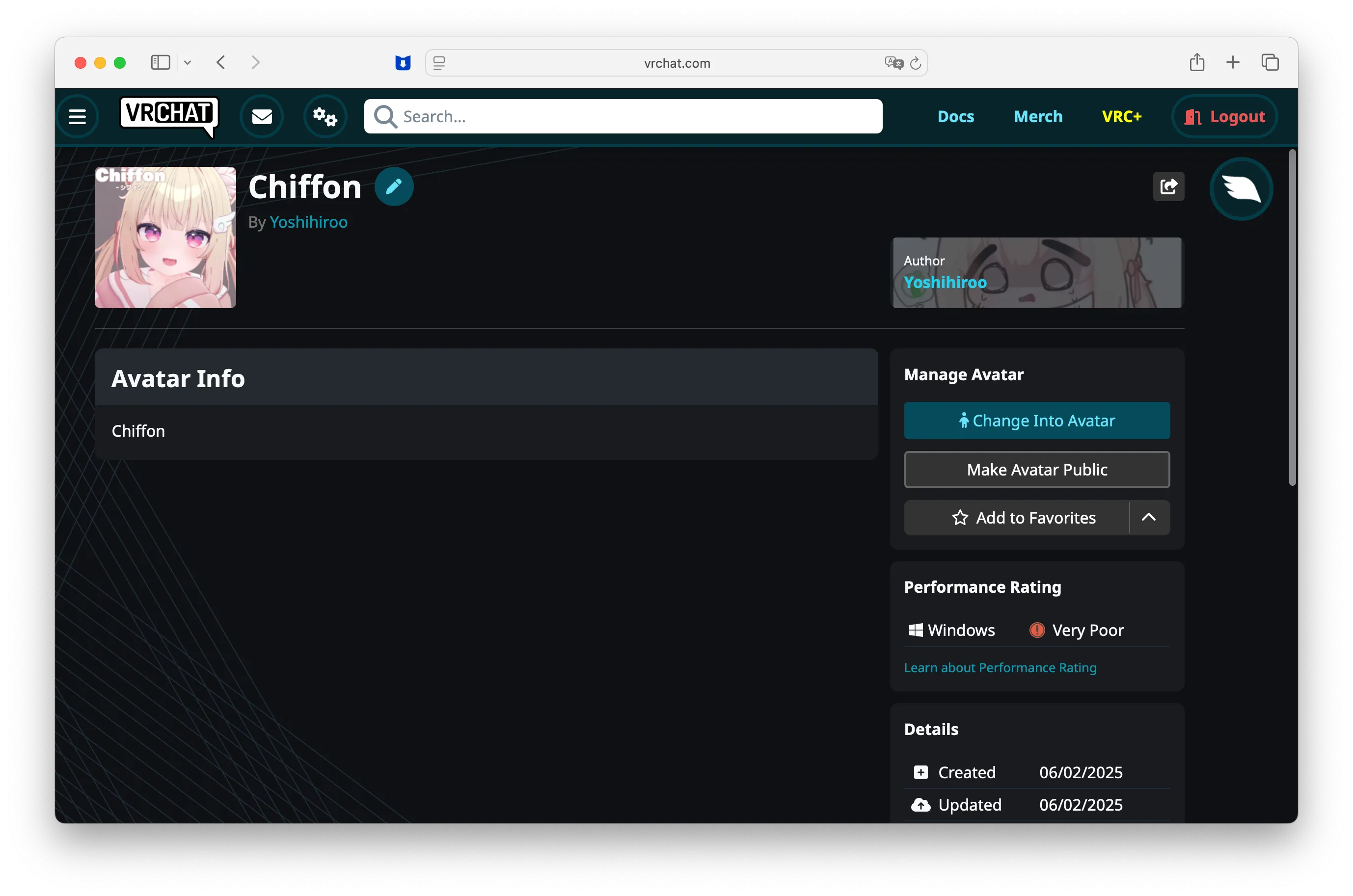 最后,在网站中即可看到我们的模型。选择“Change into Avatar”即可将模型运用到我们角色身上。
